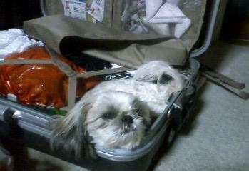 この前旅行に行く準備の時の写真です☆★ こまきも一緒に行きたいのかトランクのあいているスペースにスッポリ!?!? くつろいで寝てしまいました(-_-)zZZ